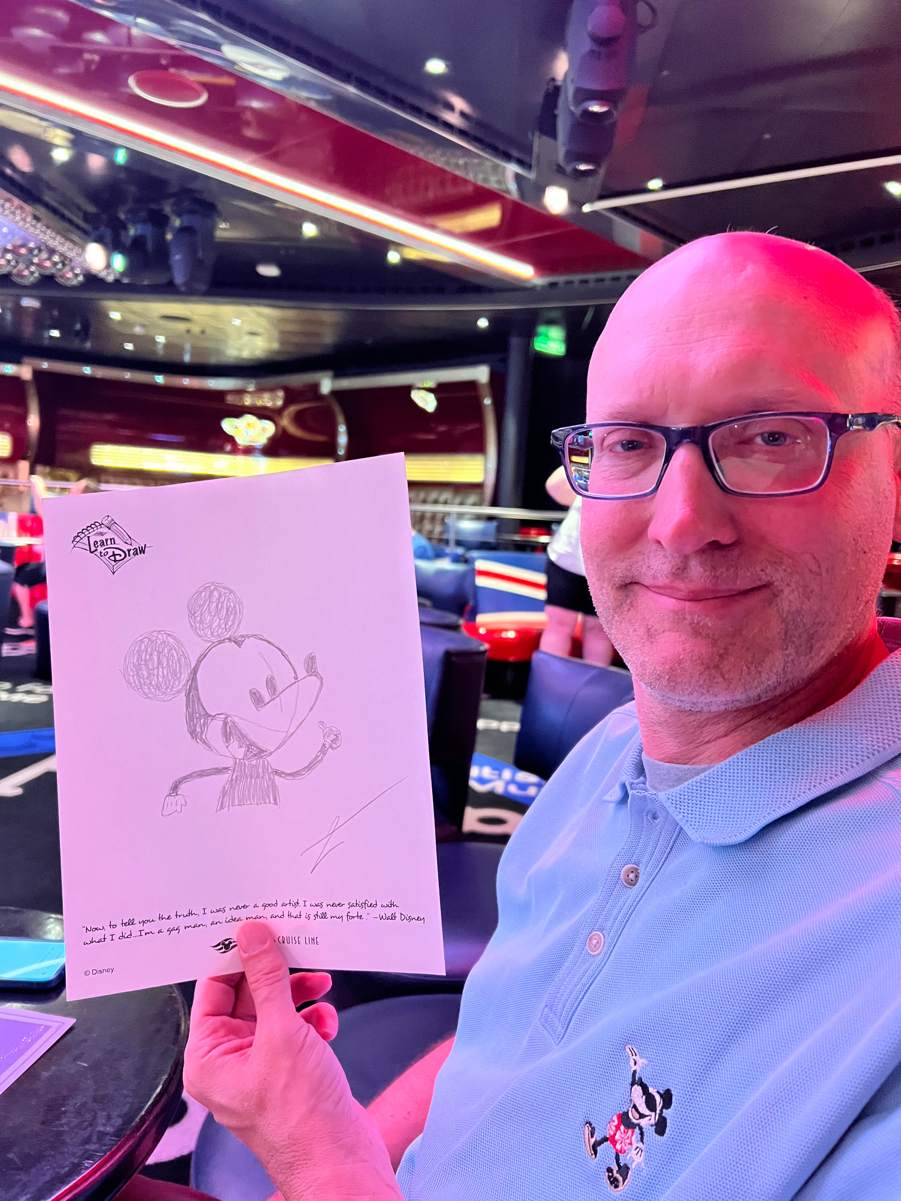 I brought both my sketchbook and junk journal. If you decide to do a Disney cruise and you love junk journaling, there are so many opportunities like the memory keeping activity. You can also grab napkins and small bits of ephemera as well as stickers. They even had a passport activity where you could glue down printables that the ship provided. So above is just my junk journal. I cut out some pages that were provided and kinda did my own thing. I will post again with my sketches.